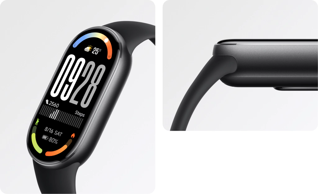 La Xiaomi Smart Band 10 llega con un diseño renovado y una pantalla AMOLED de 1.72’’, con biseles ultrafinos de solo 2.0 mm, que elevan la relación pantalla-cuerpo al 73%, ofreciendo una visualización más inmersiva, clara y elegante. Su cuerpo metálico premium, delgado y liviano, la convierten en un accesorio moderno, cómodo y resistente para el uso diario.